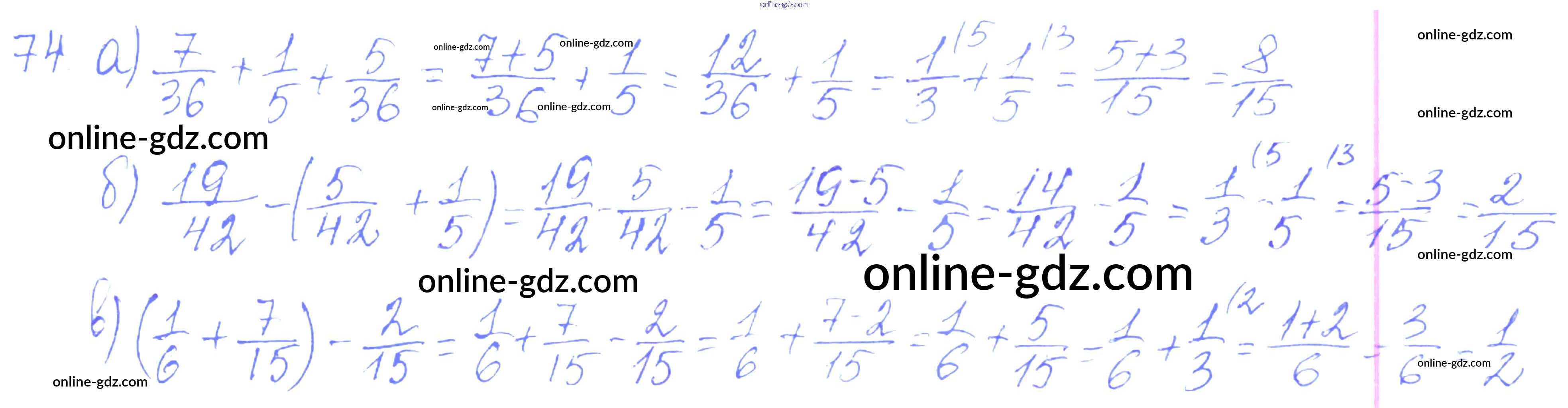Готовые домашние задания по Математике за 6 класс Дидактические материалы Чесноков, Нешков 2014 - Вариант 2 Самостоятельные работы 74