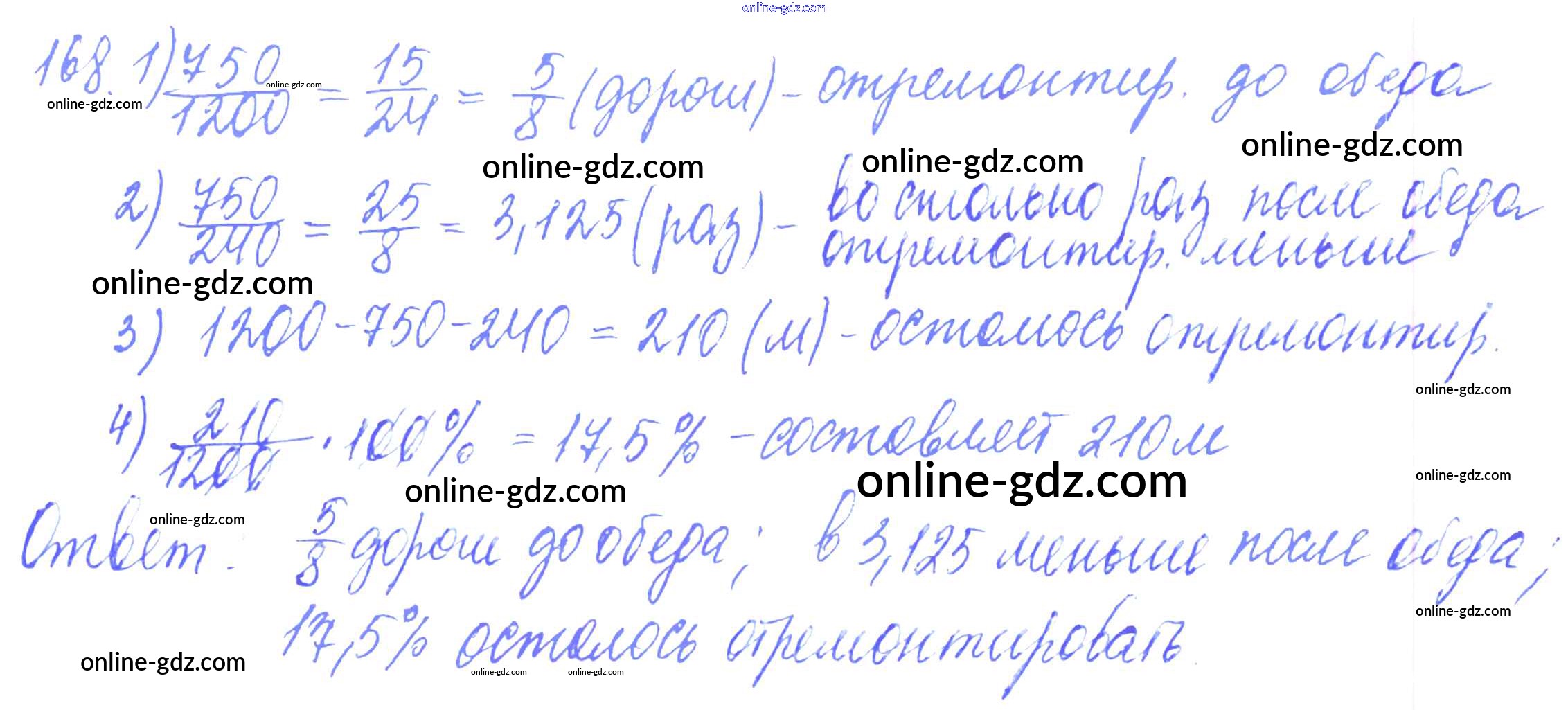 Готовые домашние задания по Математике за 6 класс Дидактические материалы Чесноков, Нешков 2014 - Вариант 3 Самостоятельные работы 168