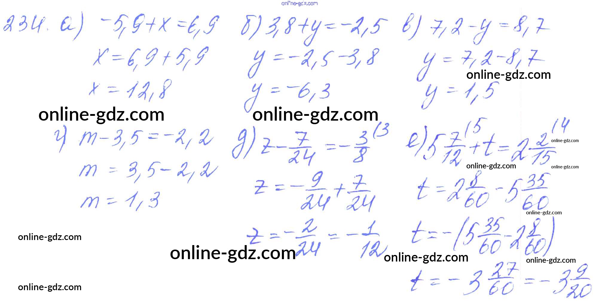 Готовые домашние задания по Математике за 6 класс Дидактические материалы Чесноков, Нешков 2014 - Вариант 3 Самостоятельные работы 234