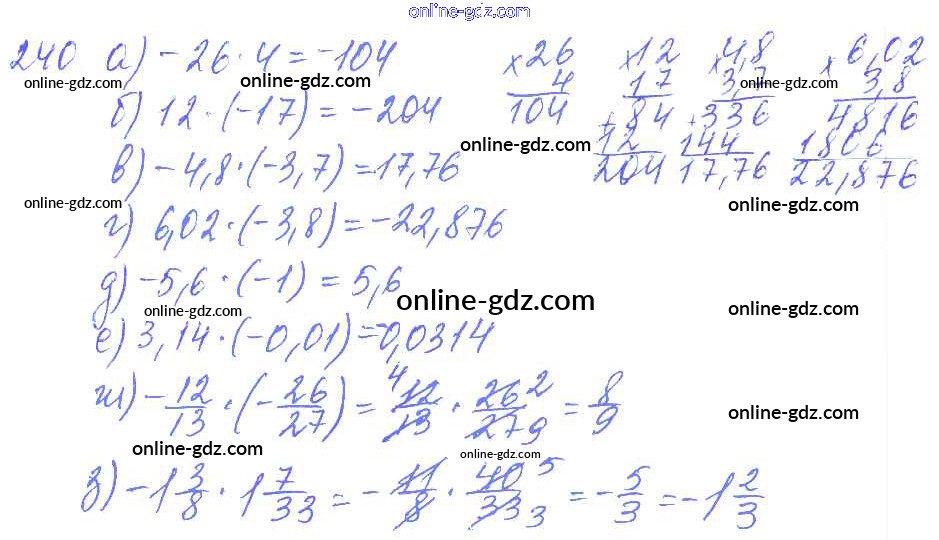 Готовые домашние задания по Математике за 6 класс Дидактические материалы Чесноков, Нешков 2014 - Вариант 3 Самостоятельные работы 240