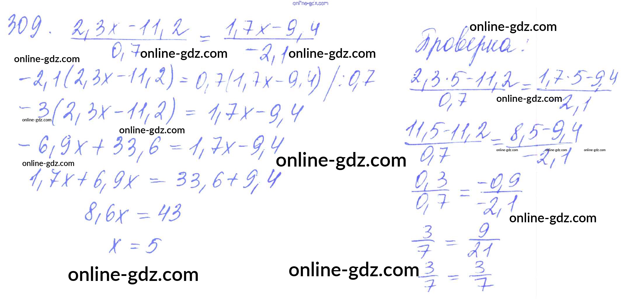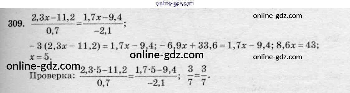 Готовые домашние задания по Математике за 6 класс Дидактические материалы Чесноков, Нешков 2014 - Вариант 3 Самостоятельные работы 309