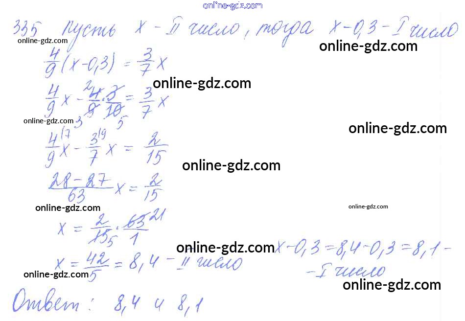 Готовые домашние задания по Математике за 6 класс Дидактические материалы Чесноков, Нешков 2014 - Вариант 3 Самостоятельные работы 335