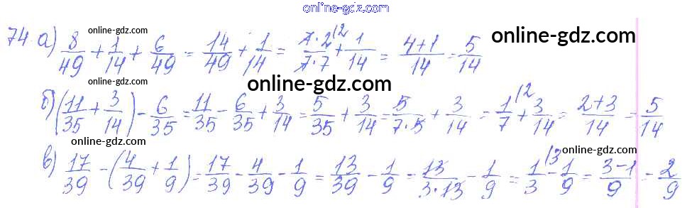 Готовые домашние задания по Математике за 6 класс Дидактические материалы Чесноков, Нешков 2014 - Вариант 3 Самостоятельные работы 74