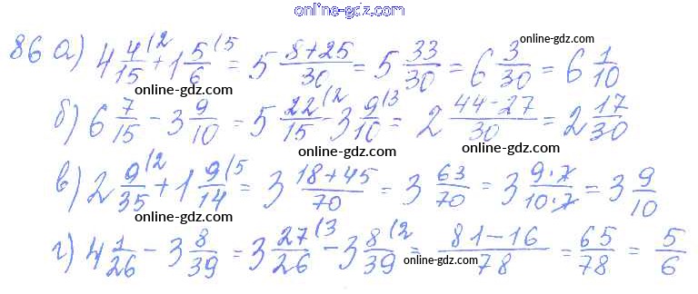 Готовые домашние задания по Математике за 6 класс Дидактические материалы Чесноков, Нешков 2014 - Вариант 3 Самостоятельные работы 86