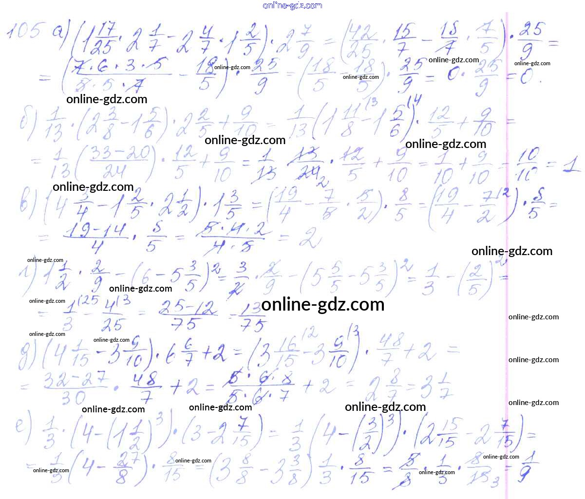 Готовые домашние задания по Математике за 6 класс Дидактические материалы Чесноков, Нешков 2014 - Вариант 4 Самостоятельные работы 105
