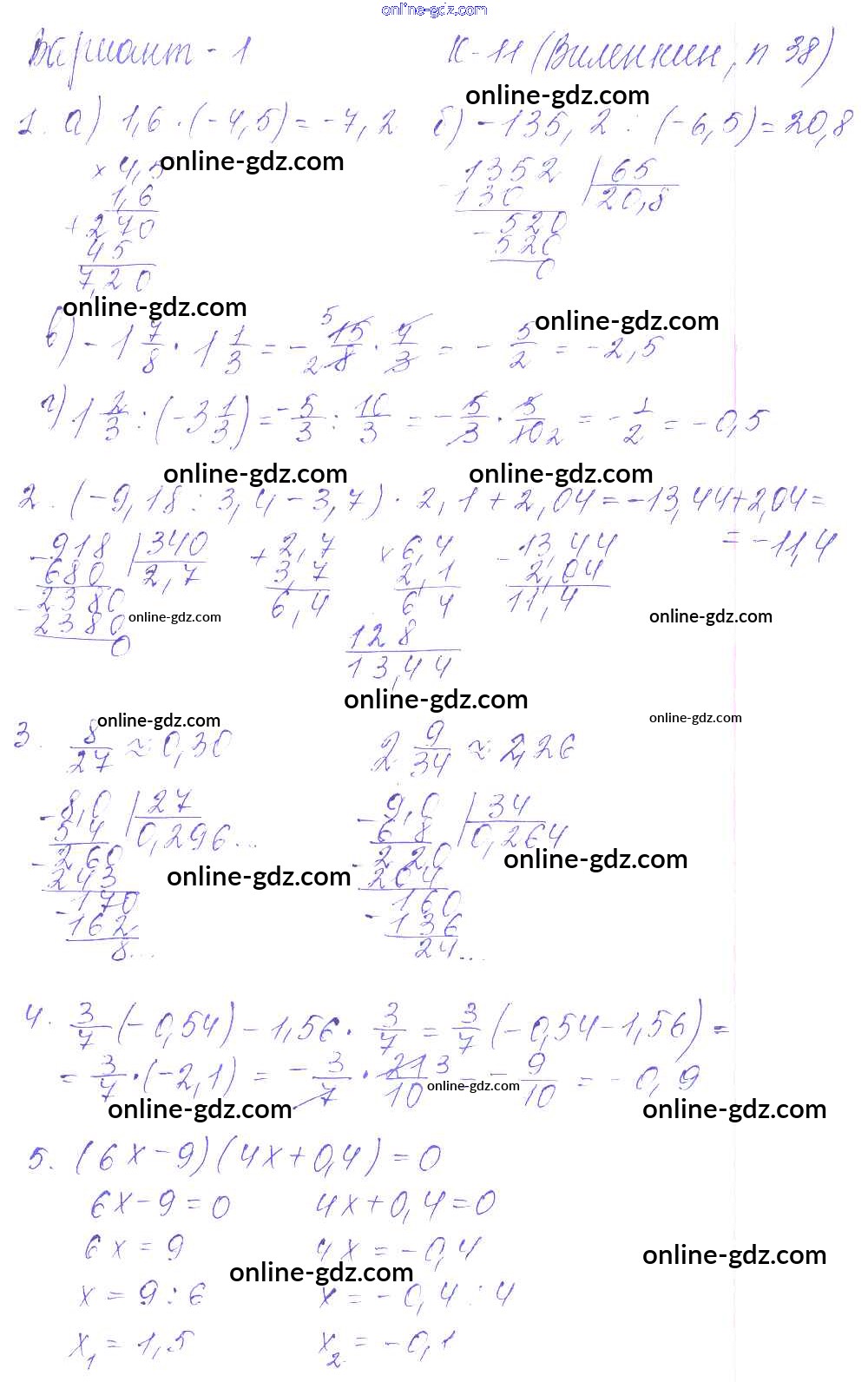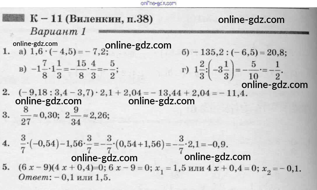 Готовые домашние задания по Математике за 6 класс Дидактические материалы Чесноков, Нешков 2014 - КР-11 к учебнику Виленкина 1