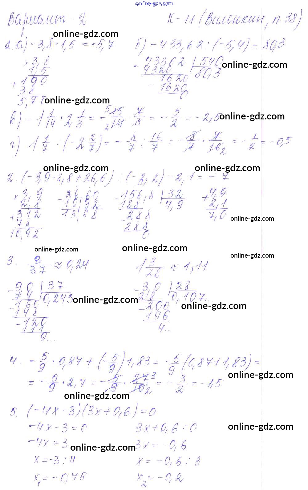 Готовые домашние задания по Математике за 6 класс Дидактические материалы Чесноков, Нешков 2014 - КР-11 к учебнику Виленкина 2