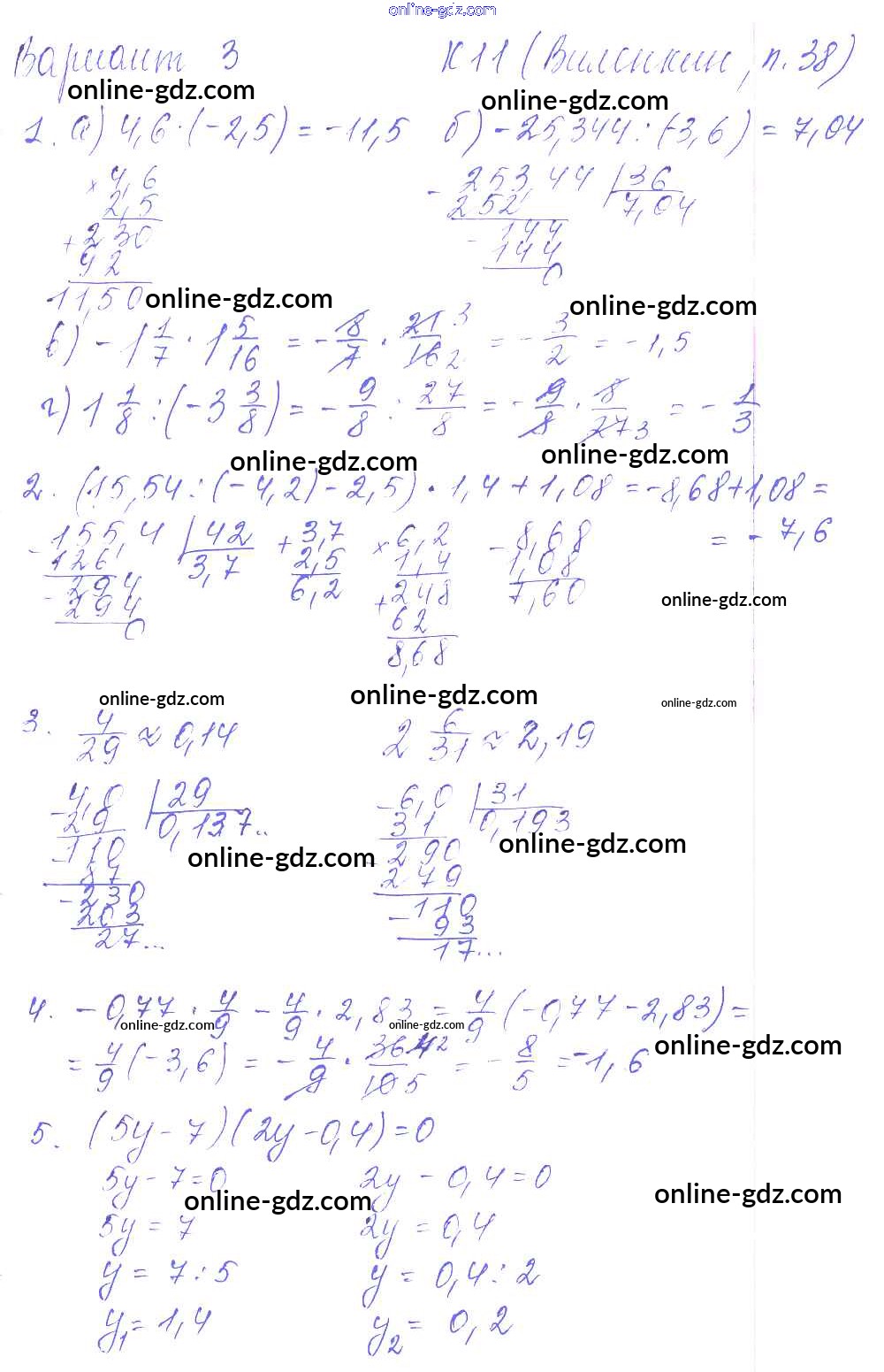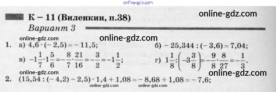 Готовые домашние задания по Математике за 6 класс Дидактические материалы Чесноков, Нешков 2014 - КР-11 к учебнику Виленкина 3