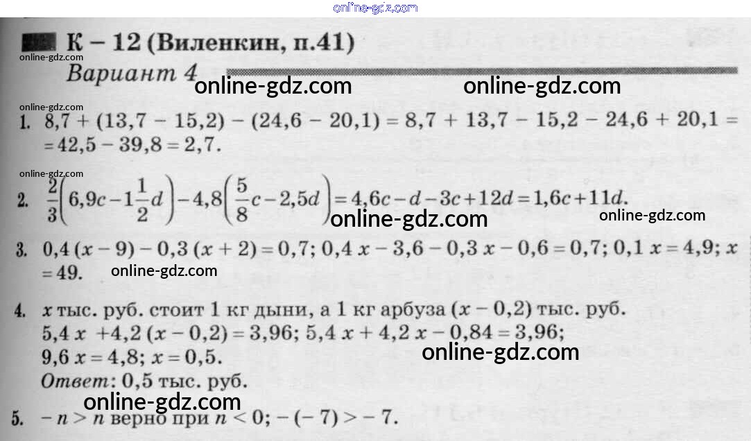 контрольная работа / к учебнику Виленкина / кр-12 / 4