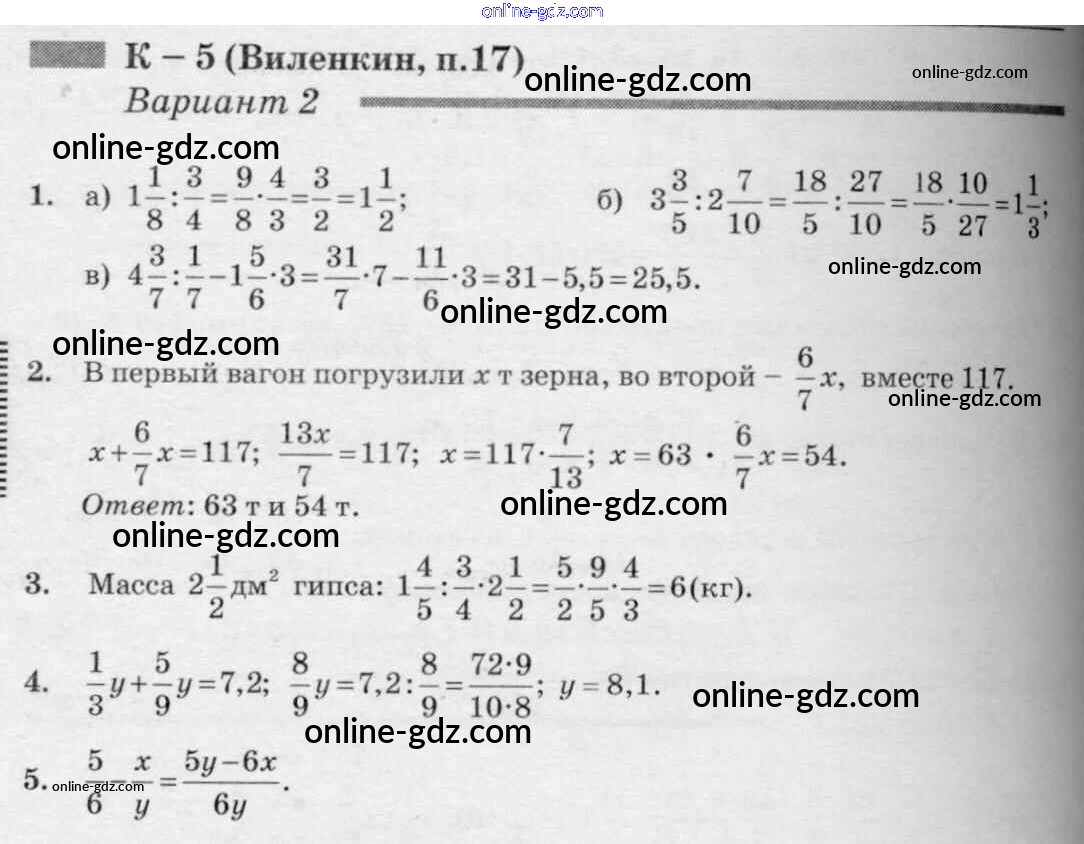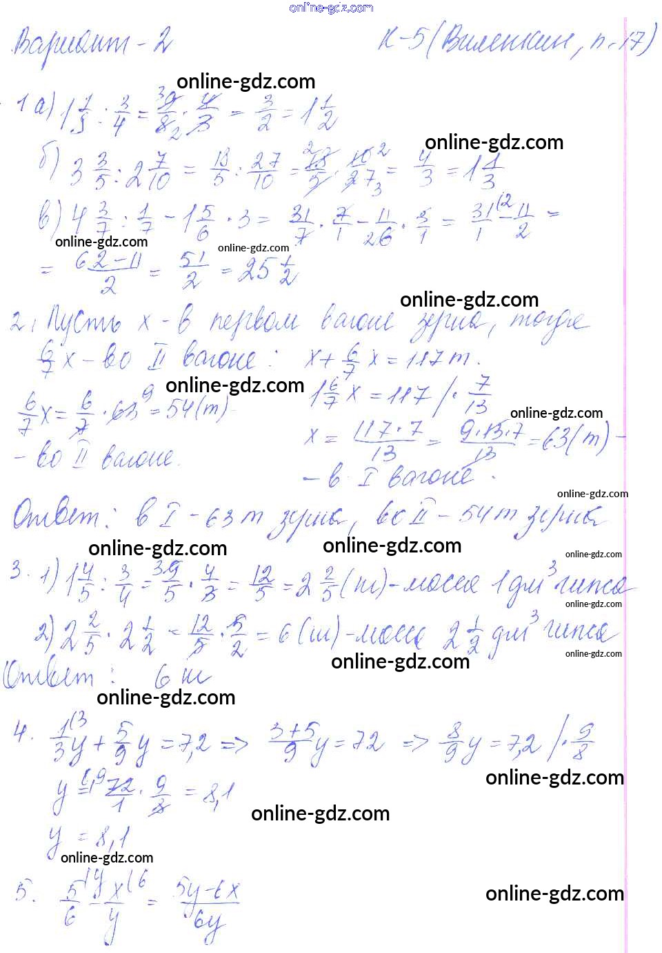 Готовые домашние задания по Математике за 6 класс Дидактические материалы Чесноков, Нешков 2014 - КР-5 к учебнику Виленкина 2
