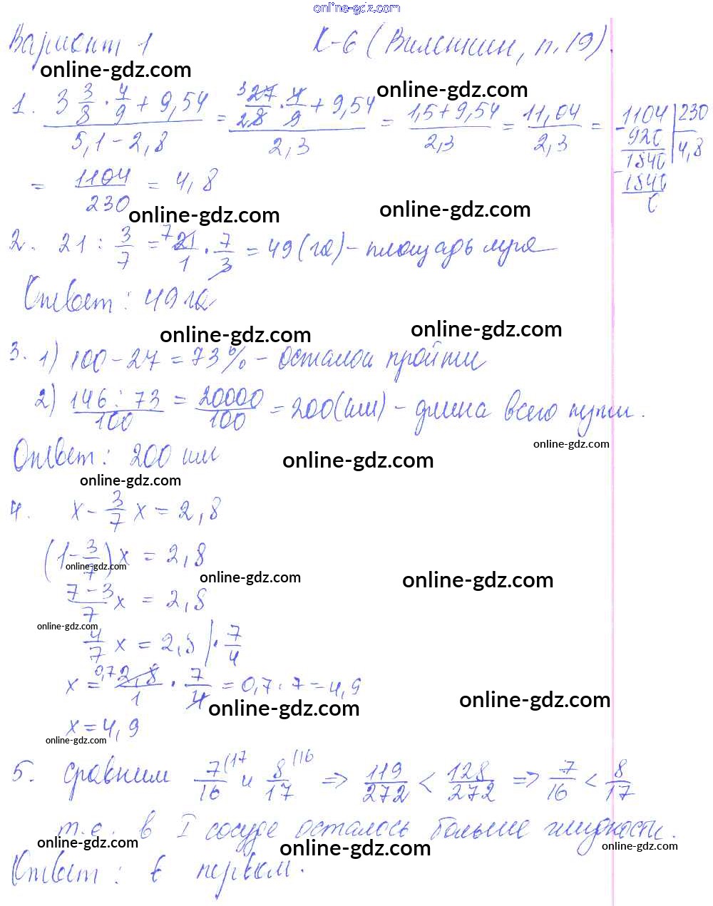 Готовые домашние задания по Математике за 6 класс Дидактические материалы Чесноков, Нешков 2014 - КР-6 к учебнику Виленкина 1