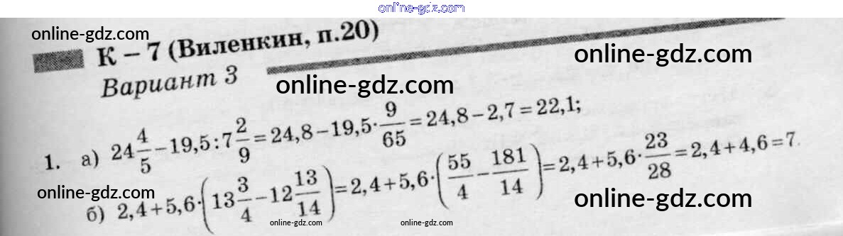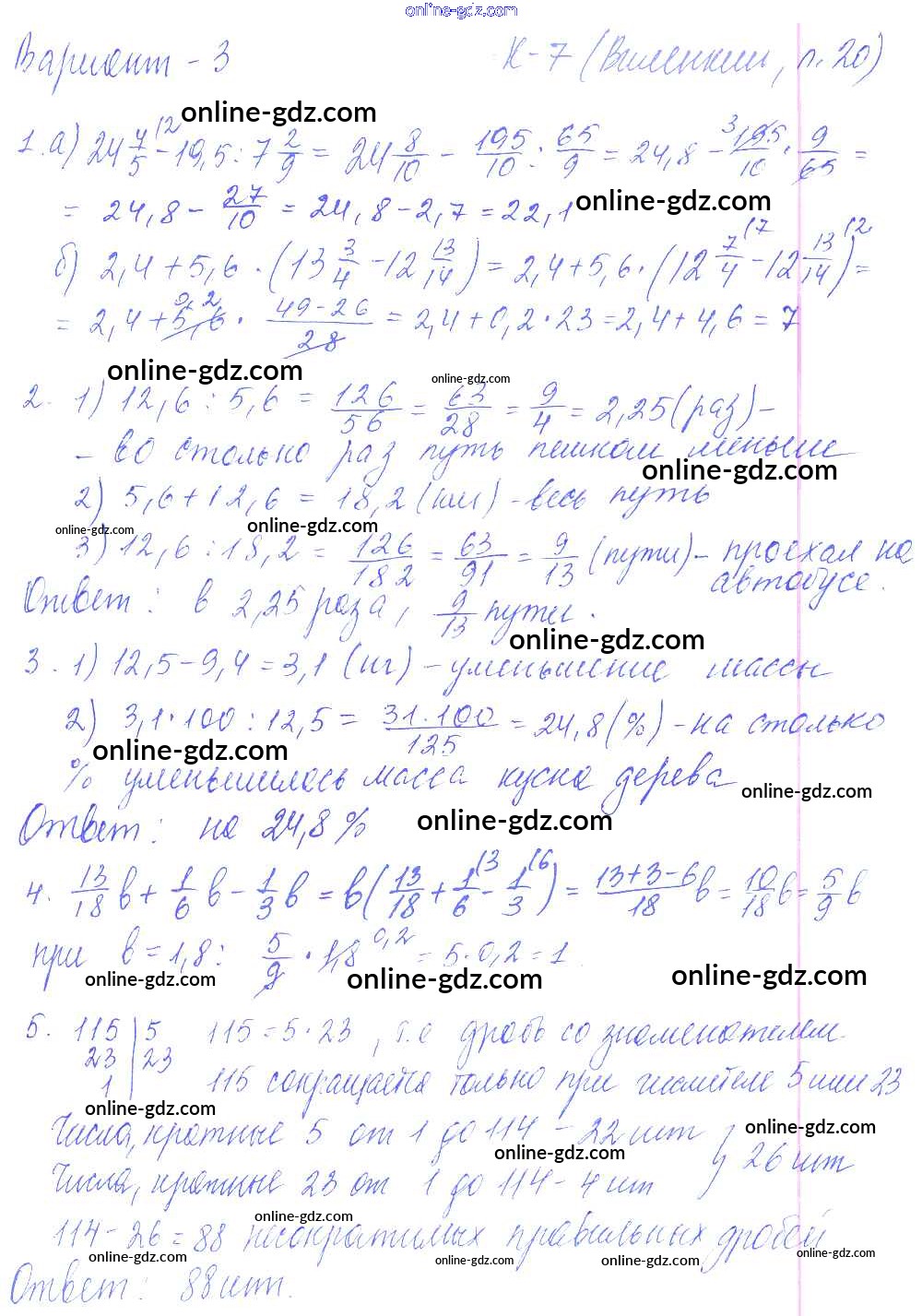 Готовые домашние задания по Математике за 6 класс Дидактические материалы Чесноков, Нешков 2014 - КР-7 к учебнику Виленкина 3