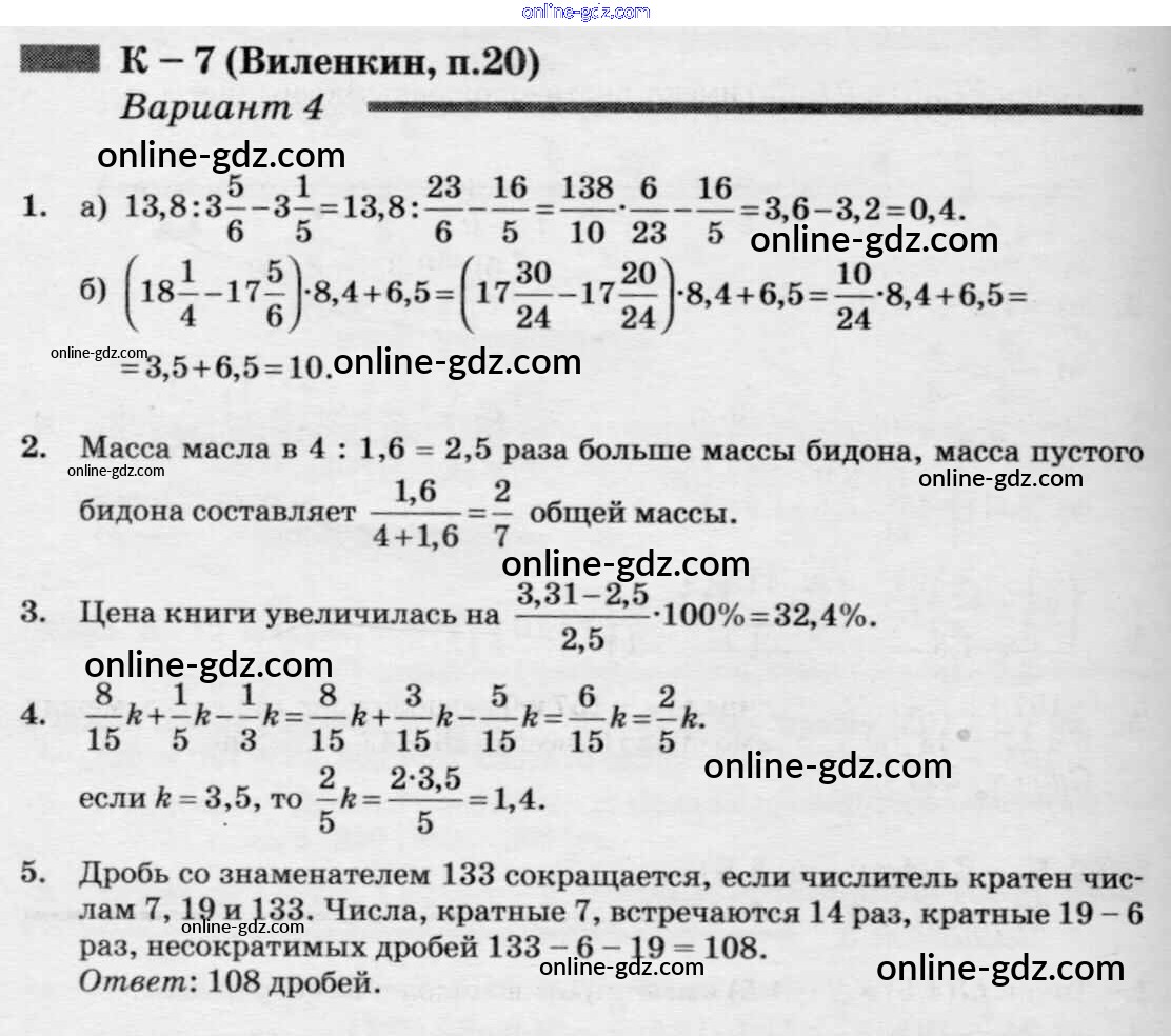 Готовые домашние задания по Математике за 6 класс Дидактические материалы Чесноков, Нешков 2014 - КР-7 к учебнику Виленкина 4