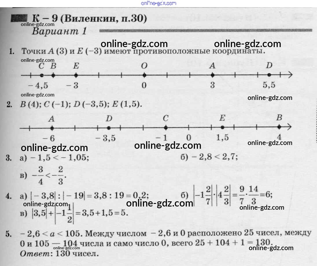 Готовые домашние задания по Математике за 6 класс Дидактические материалы Чесноков, Нешков 2014 - КР-9 к учебнику Виленкина 1