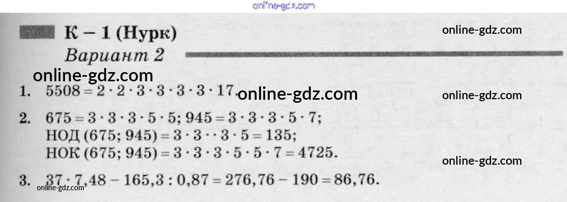 Готовые домашние задания по Математике за 6 класс Дидактические материалы Чесноков, Нешков 2014 - КР-1 к учебнику Нурка 2