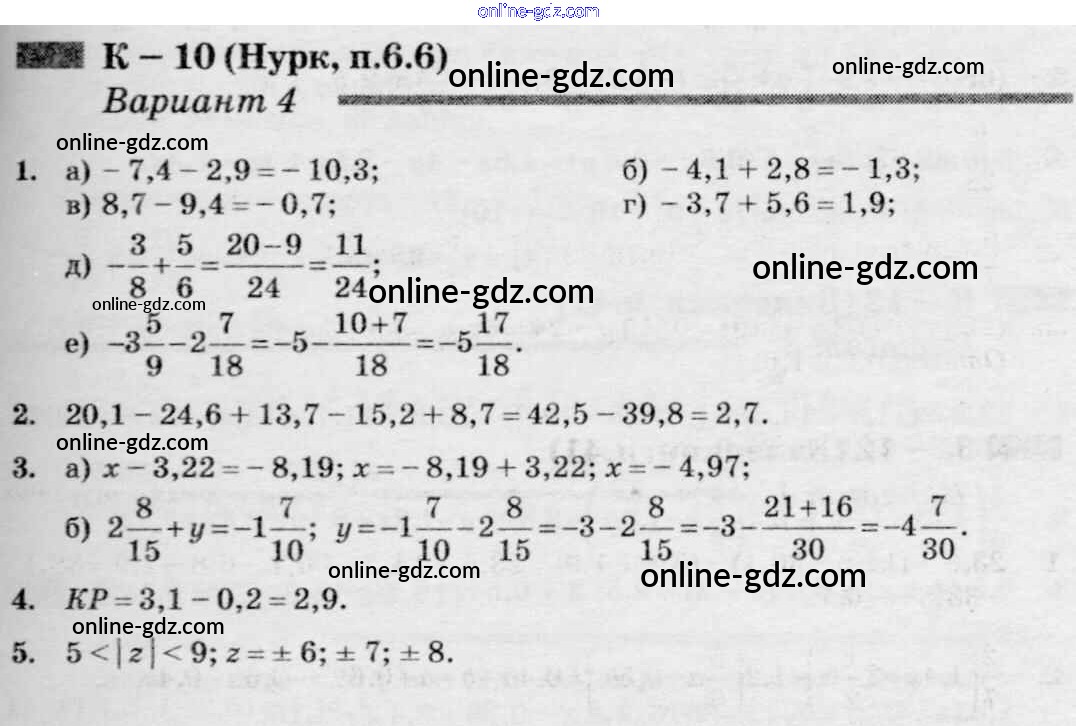 Готовые домашние задания по Математике за 6 класс Дидактические материалы Чесноков, Нешков 2014 - КР-10 к учебнику Нурка 4