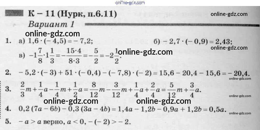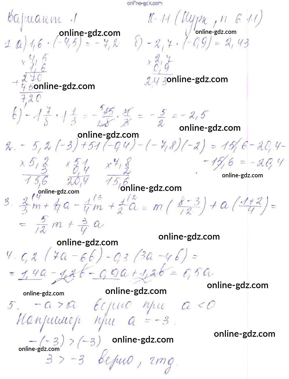 Готовые домашние задания по Математике за 6 класс Дидактические материалы Чесноков, Нешков 2014 - КР-11 к учебнику Нурка 1