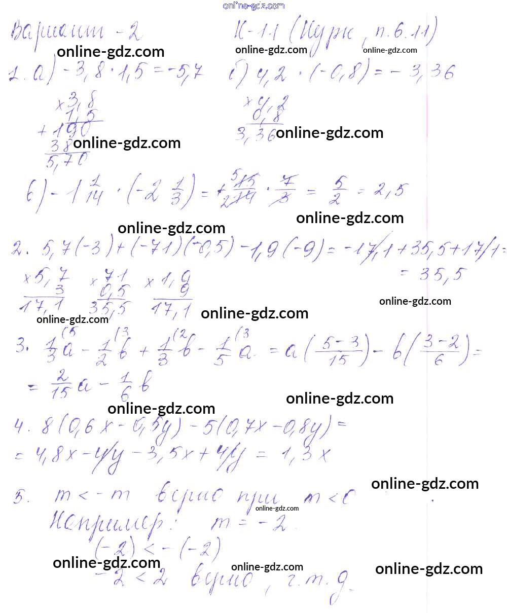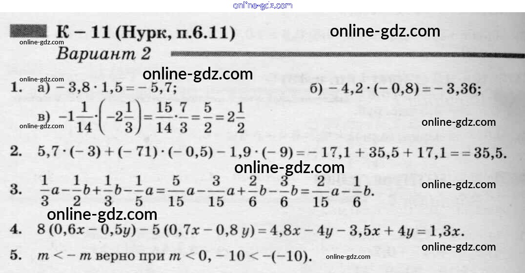 Готовые домашние задания по Математике за 6 класс Дидактические материалы Чесноков, Нешков 2014 - КР-11 к учебнику Нурка 2