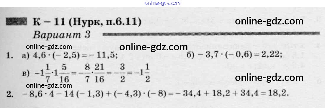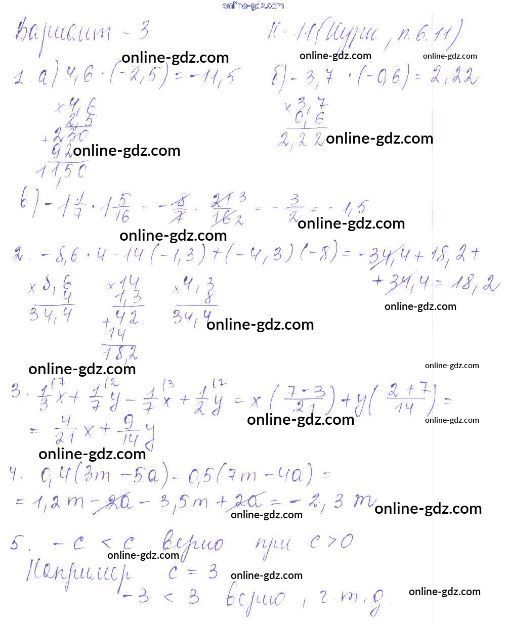 Готовые домашние задания по Математике за 6 класс Дидактические материалы Чесноков, Нешков 2014 - КР-11 к учебнику Нурка 3