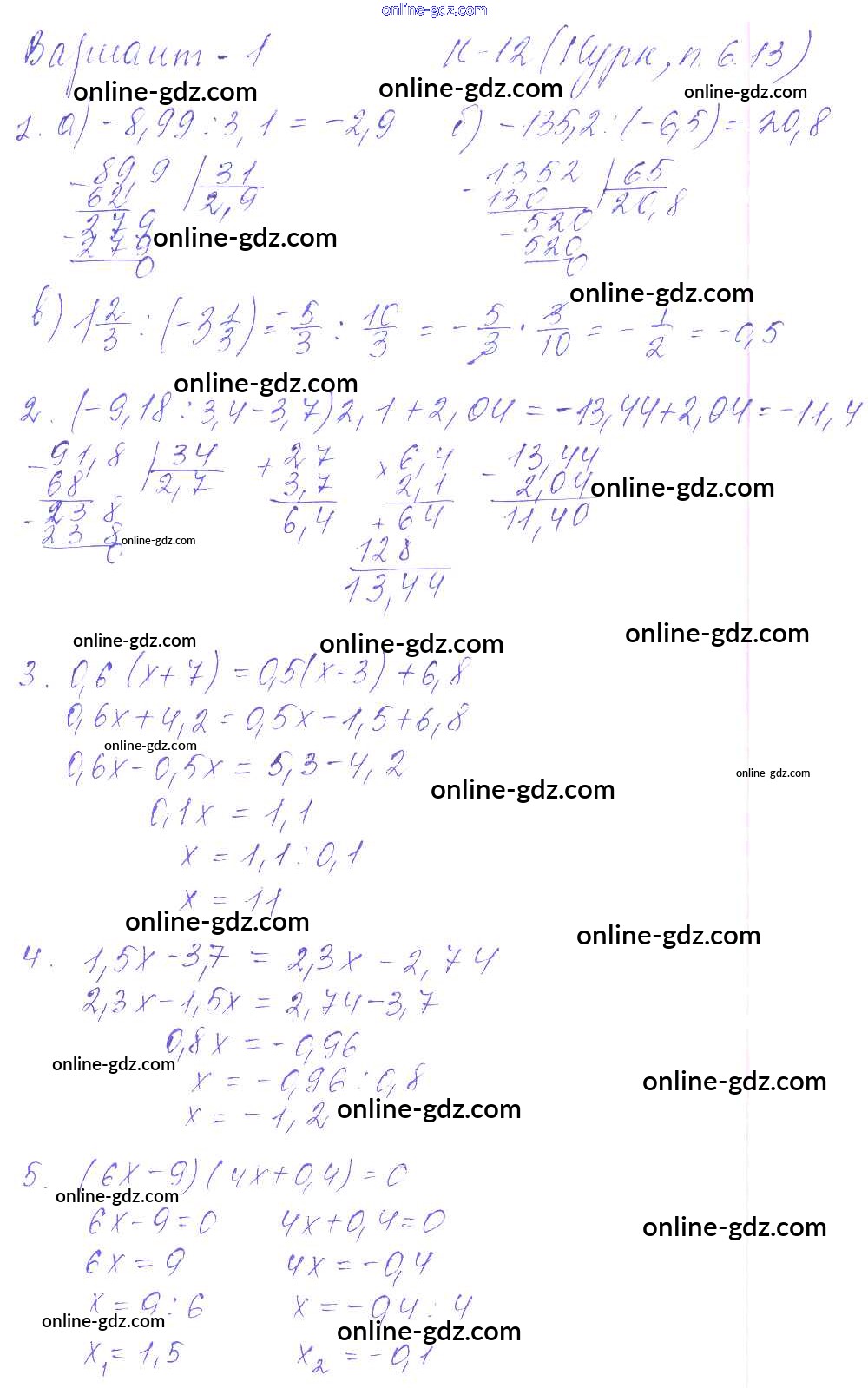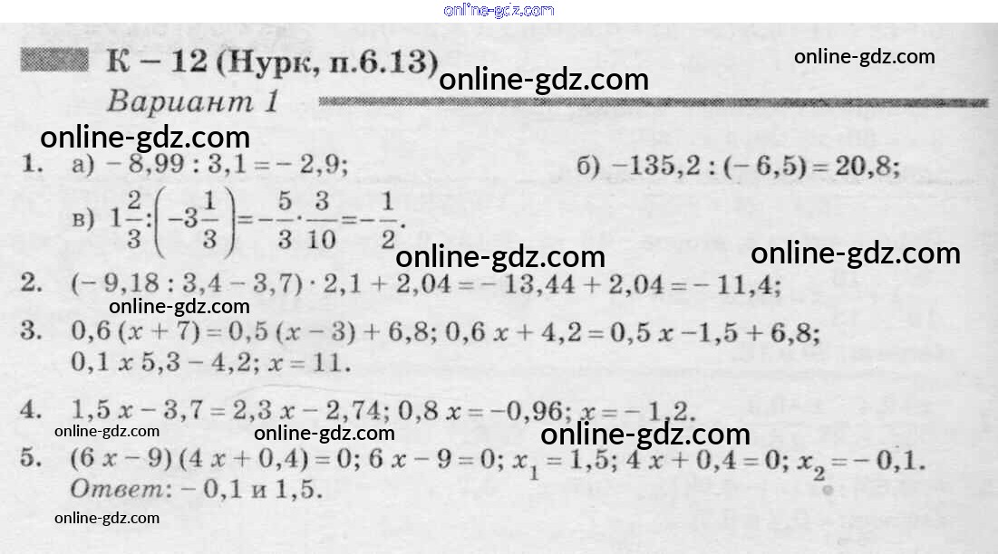 Готовые домашние задания по Математике за 6 класс Дидактические материалы Чесноков, Нешков 2014 - КР-12 к учебнику Нурка 1