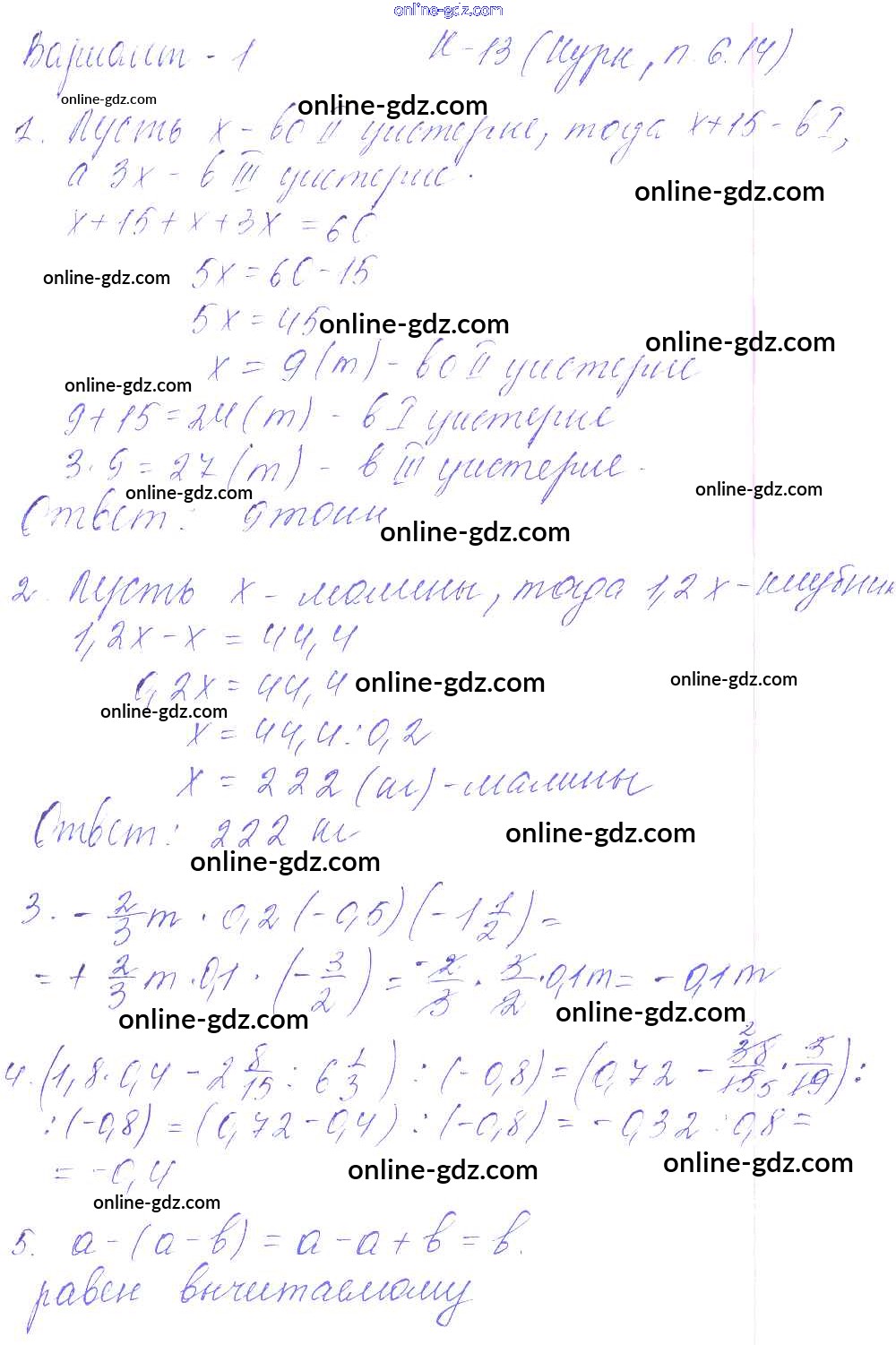 Готовые домашние задания по Математике за 6 класс Дидактические материалы Чесноков, Нешков 2014 - КР-13 к учебнику Нурка 1