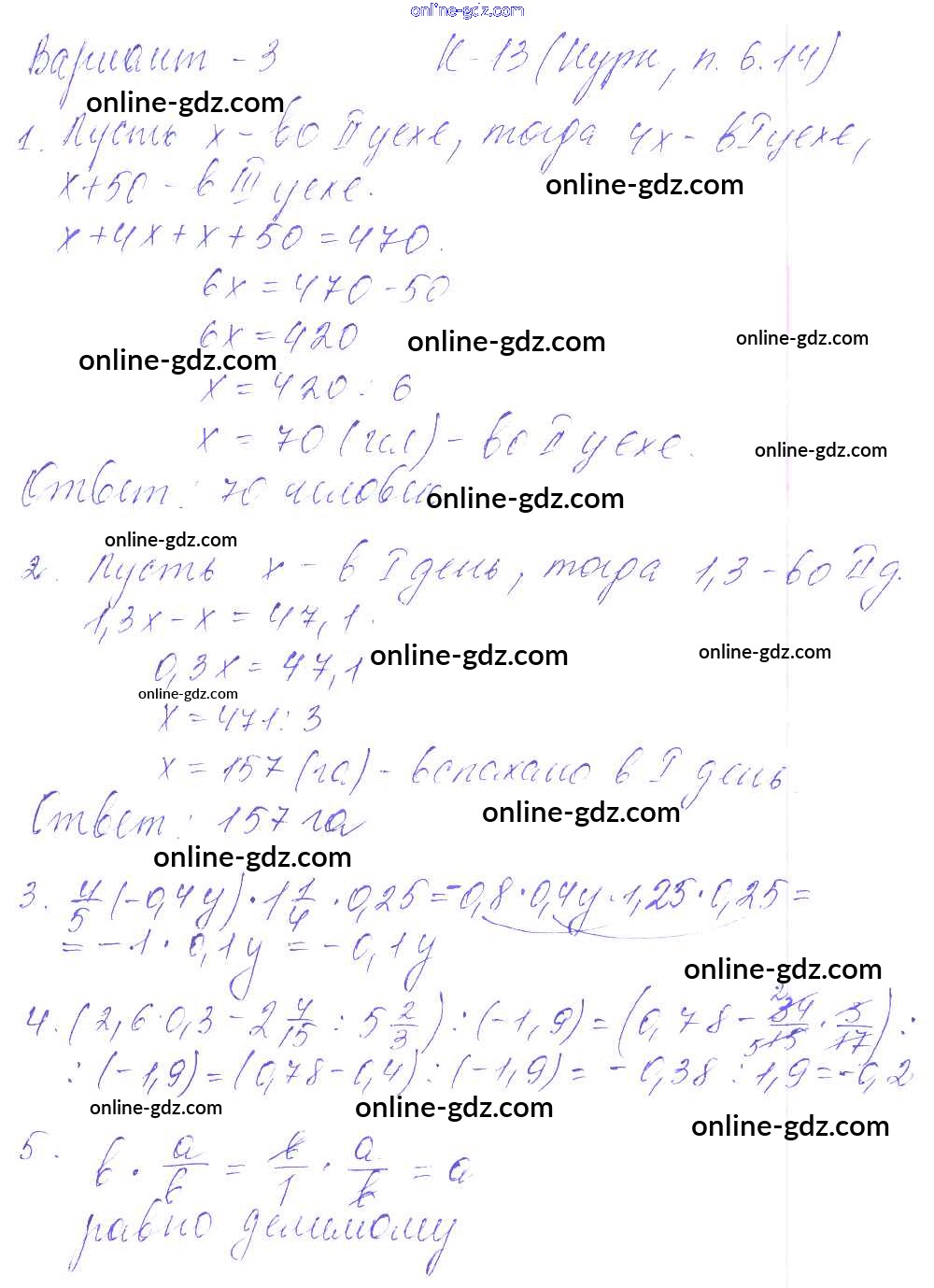 Готовые домашние задания по Математике за 6 класс Дидактические материалы Чесноков, Нешков 2014 - КР-13 к учебнику Нурка 3