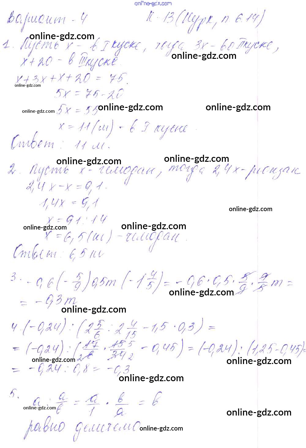 Готовые домашние задания по Математике за 6 класс Дидактические материалы Чесноков, Нешков 2014 - КР-13 к учебнику Нурка 4