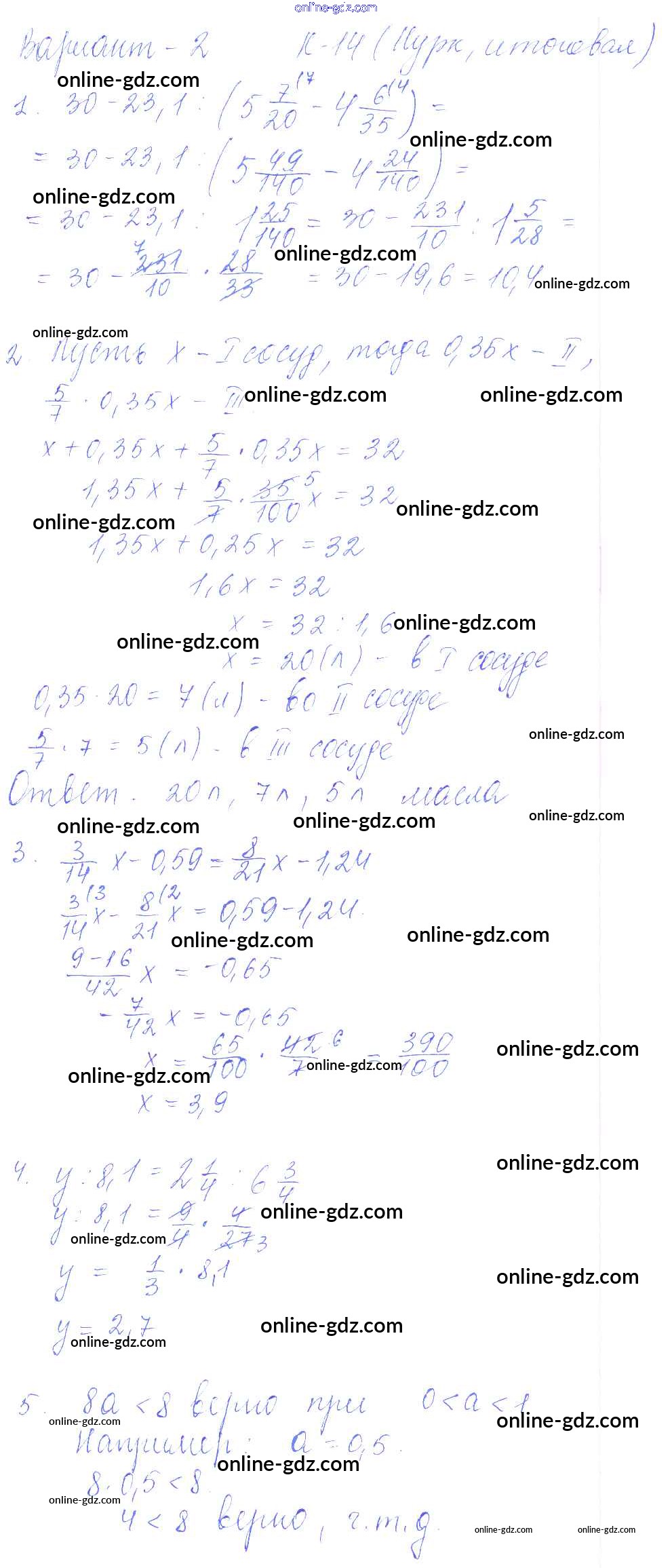 Готовые домашние задания по Математике за 6 класс Дидактические материалы Чесноков, Нешков 2014 - КР-14 к учебнику Нурка 2