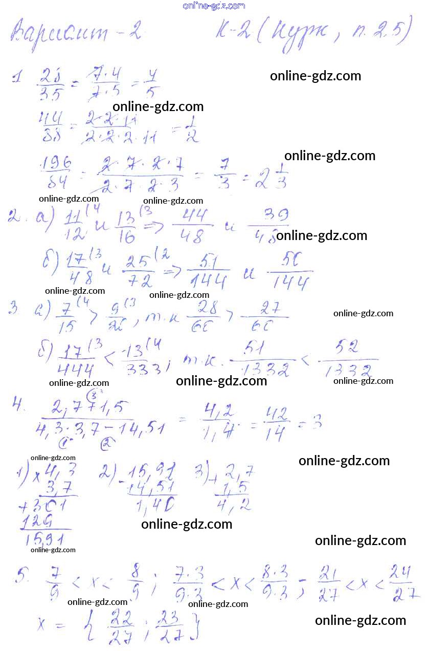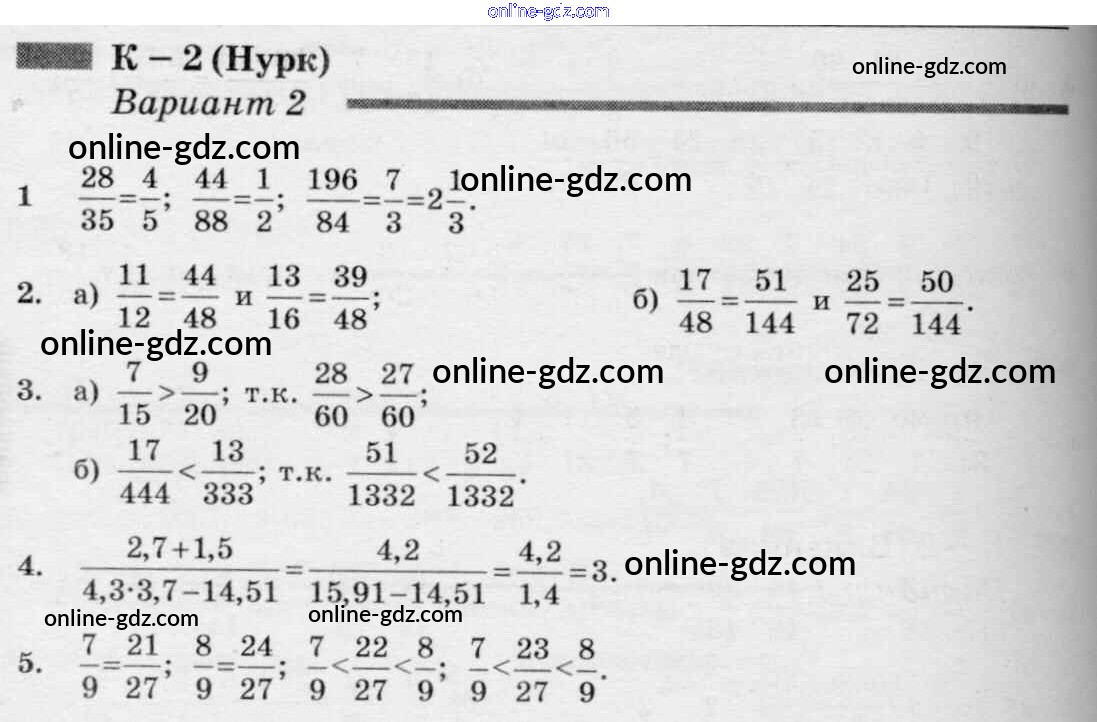 Готовые домашние задания по Математике за 6 класс Дидактические материалы Чесноков, Нешков 2014 - КР-2 к учебнику Нурка 2