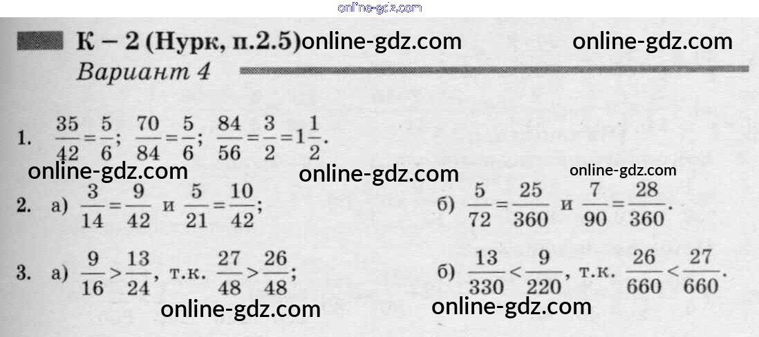 Готовые домашние задания по Математике за 6 класс Дидактические материалы Чесноков, Нешков 2014 - КР-2 к учебнику Нурка 4