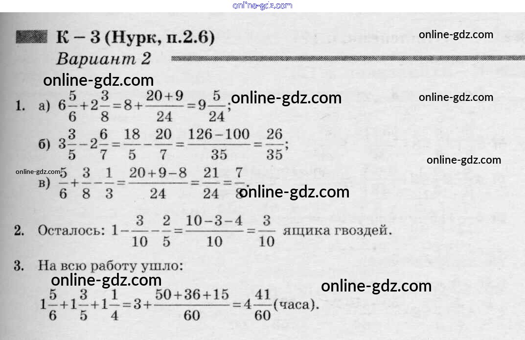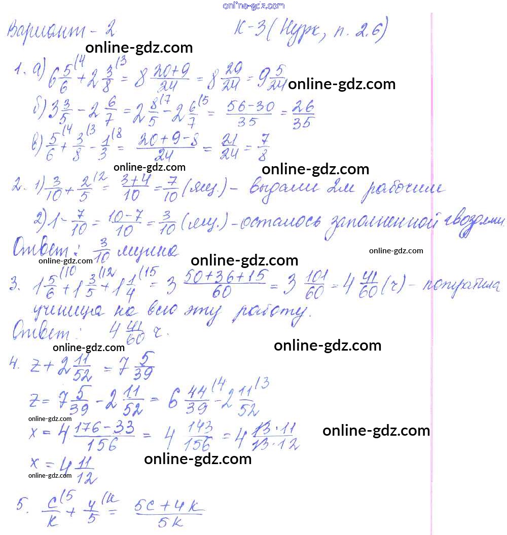 Готовые домашние задания по Математике за 6 класс Дидактические материалы Чесноков, Нешков 2014 - КР-3 к учебнику Нурка 2