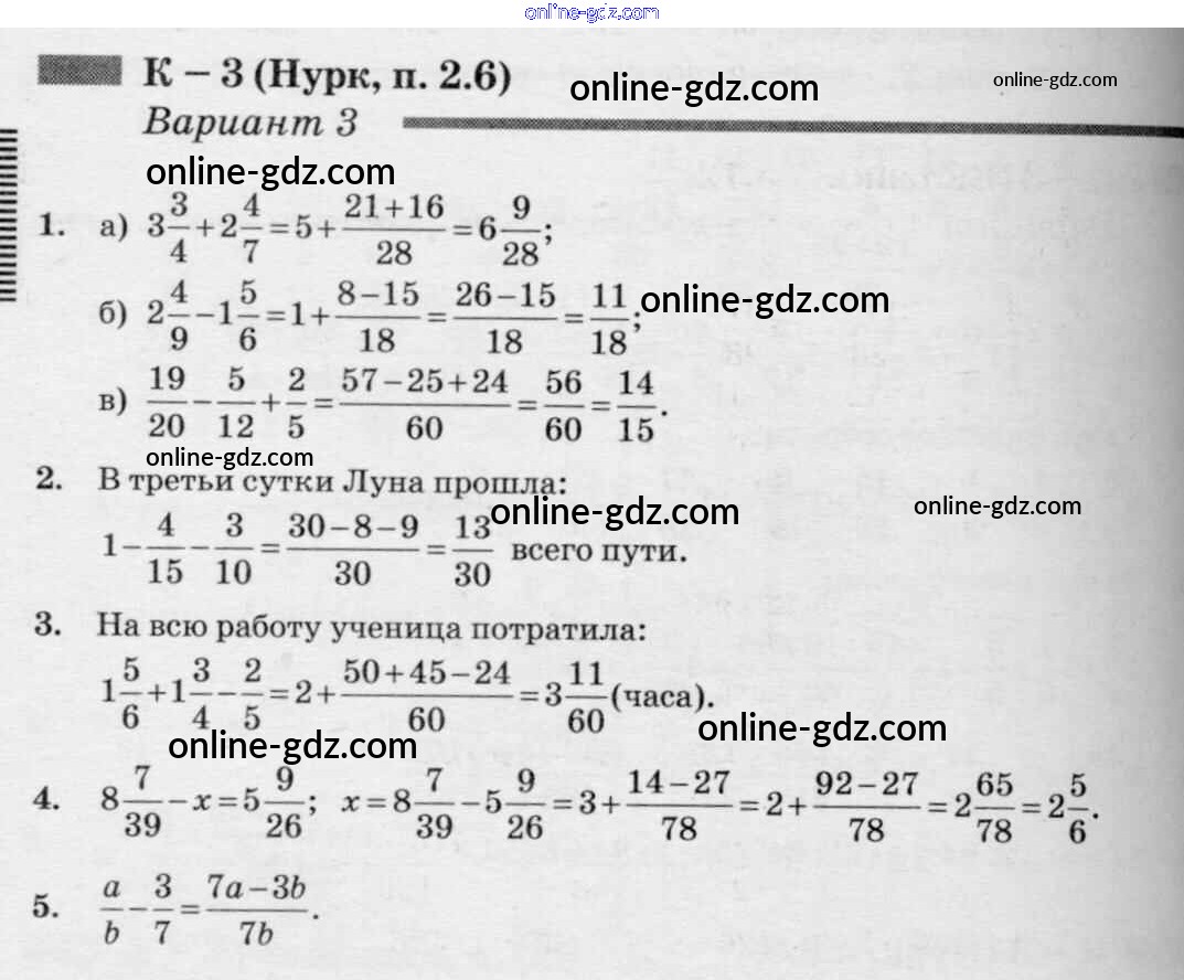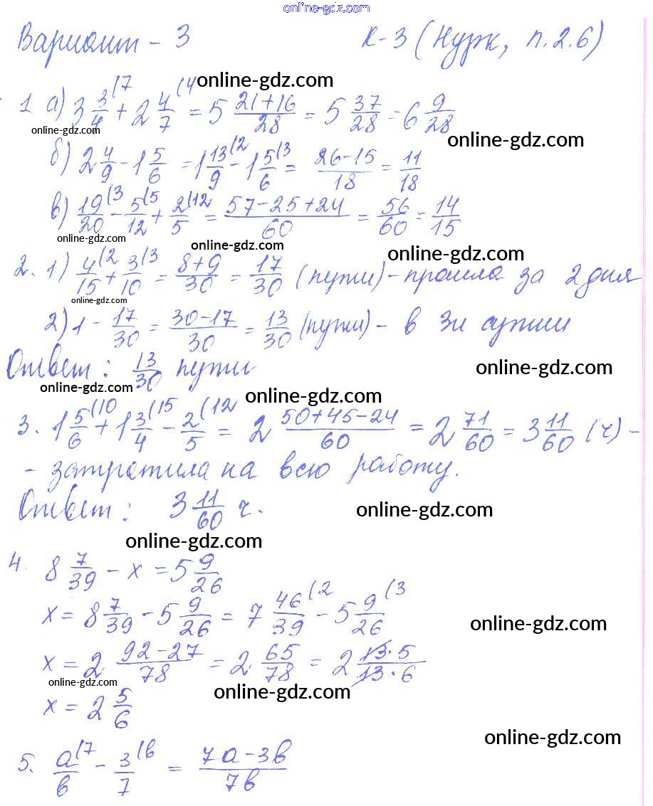 Готовые домашние задания по Математике за 6 класс Дидактические материалы Чесноков, Нешков 2014 - КР-3 к учебнику Нурка 3