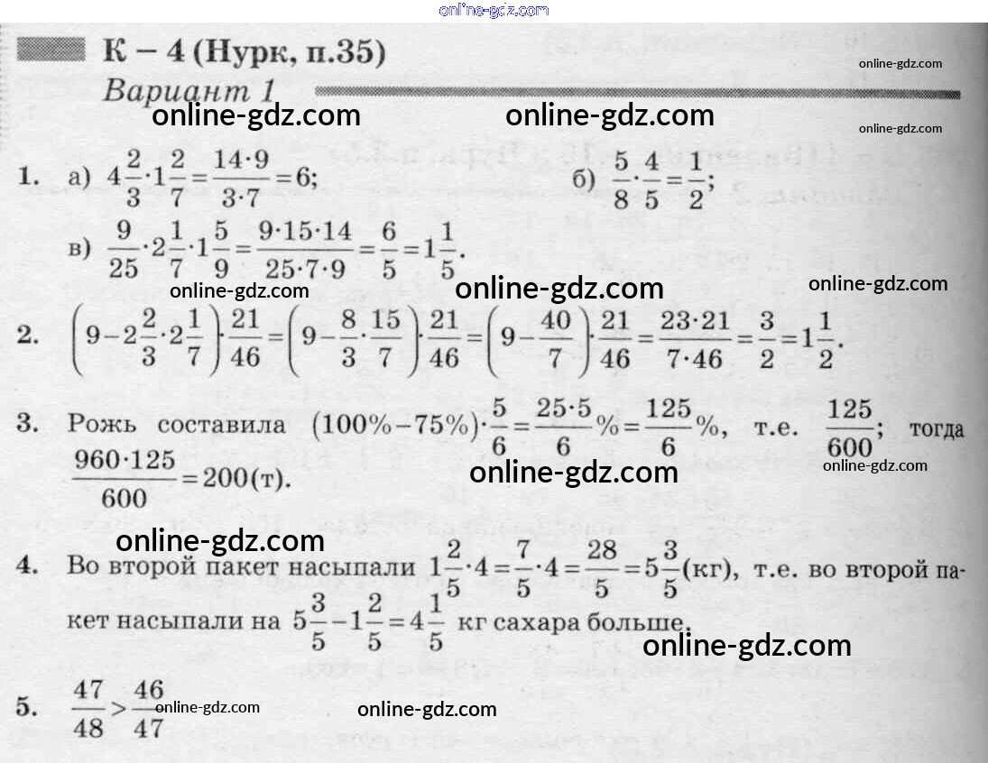 Готовые домашние задания по Математике за 6 класс Дидактические материалы Чесноков, Нешков 2014 - КР-4 к учебнику Нурка 1