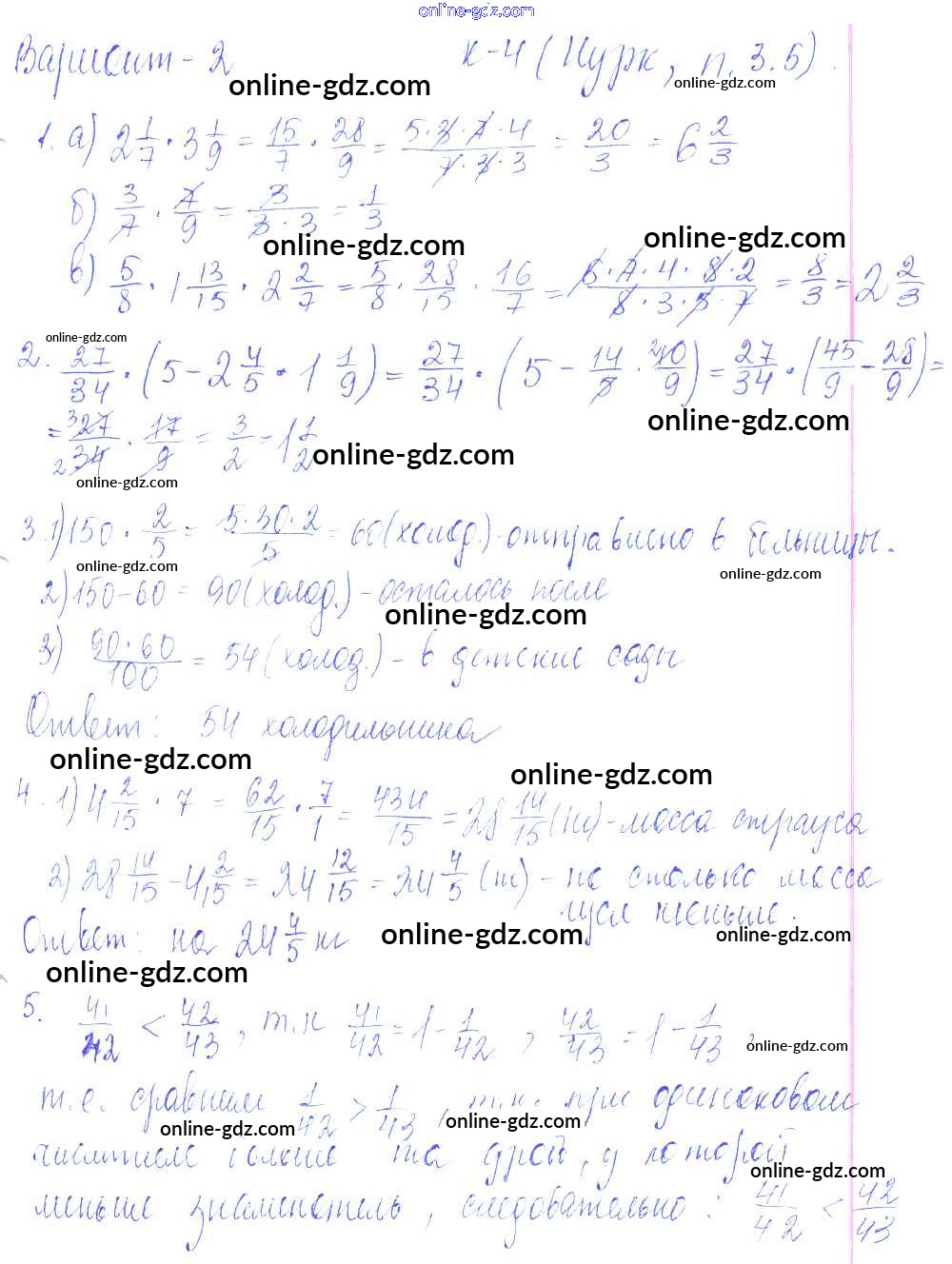 Готовые домашние задания по Математике за 6 класс Дидактические материалы Чесноков, Нешков 2014 - КР-4 к учебнику Нурка 2