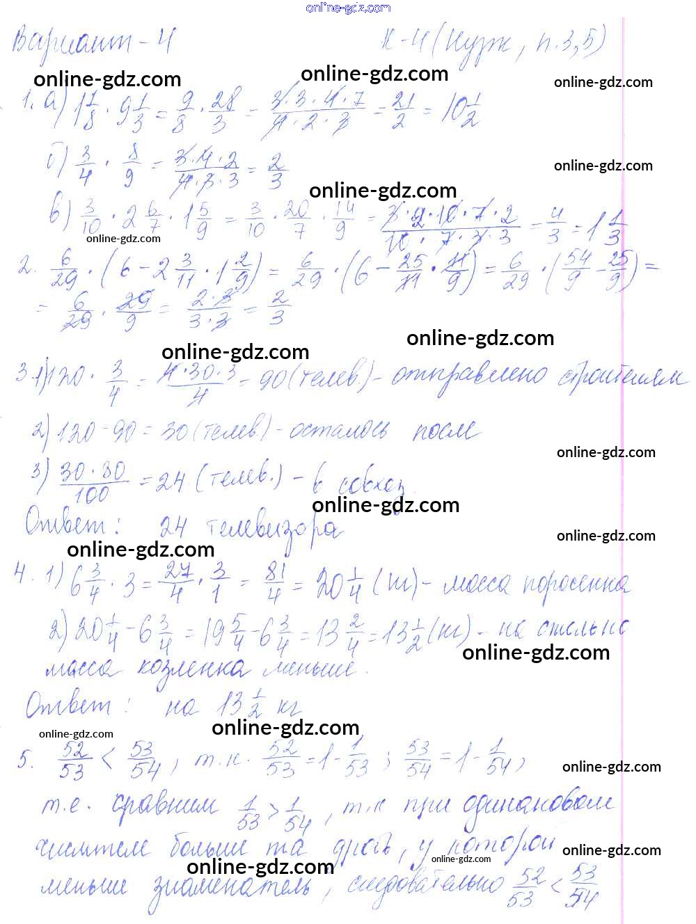 Готовые домашние задания по Математике за 6 класс Дидактические материалы Чесноков, Нешков 2014 - КР-4 к учебнику Нурка 4