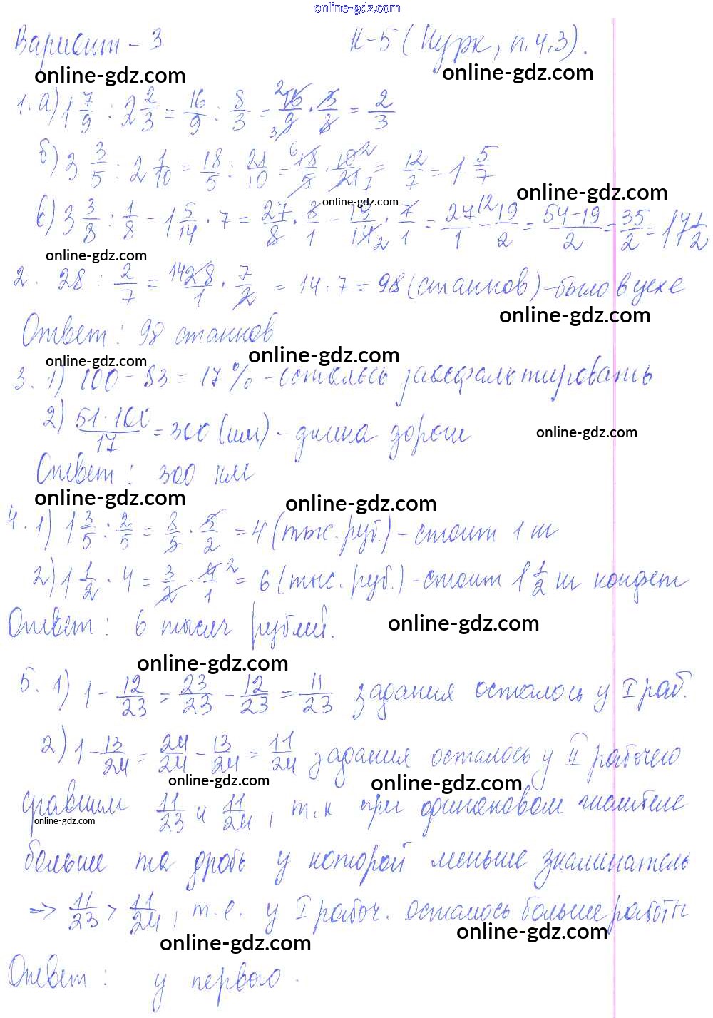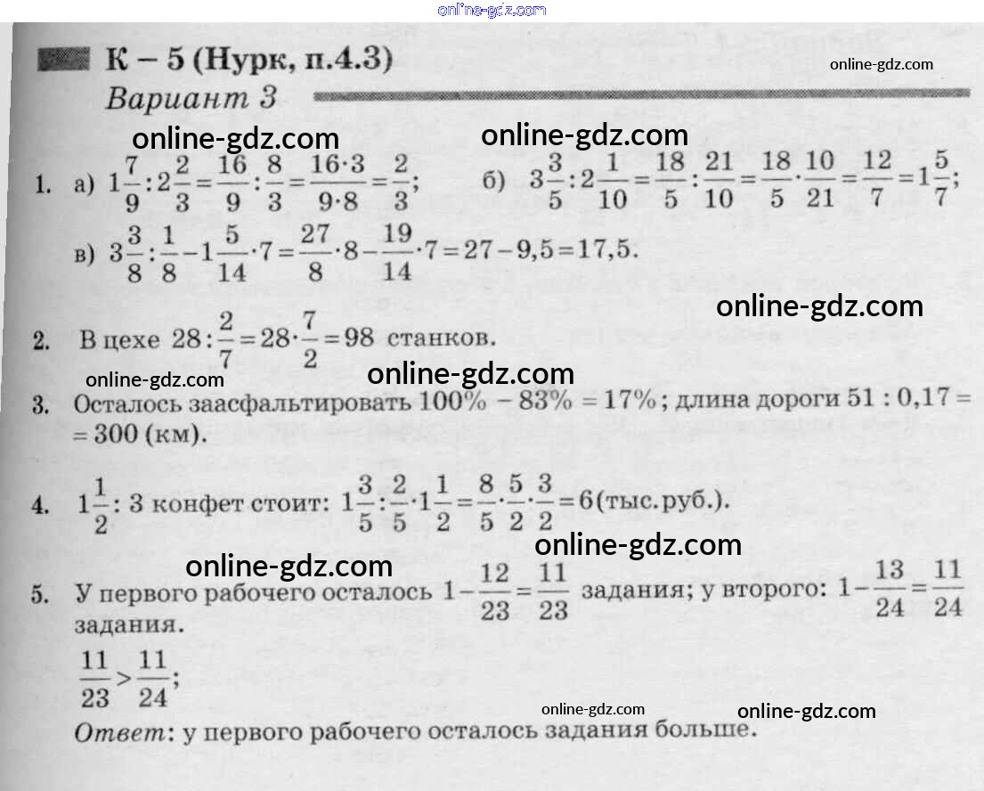 Готовые домашние задания по Математике за 6 класс Дидактические материалы Чесноков, Нешков 2014 - КР-5 к учебнику Нурка 3