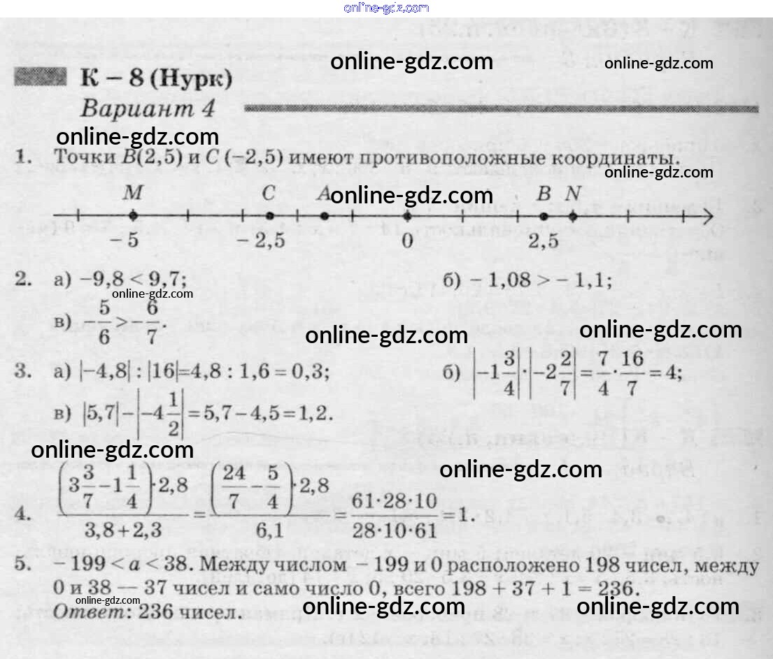 Готовые домашние задания по Математике за 6 класс Дидактические материалы Чесноков, Нешков 2014 - КР-8 к учебнику Нурка 4