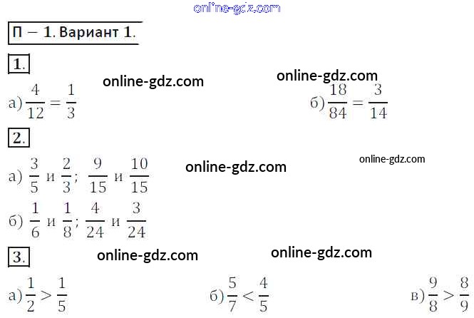 Готовые домашние задания по Математике за 6 класс Дидактические материалы Кузнецова, Минаева 2017 - ПР-1 Проверочные работы 1