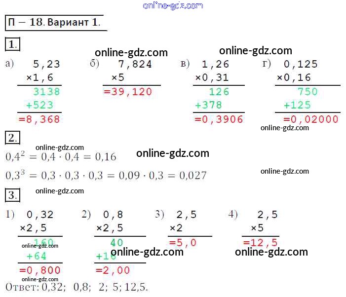 Готовые домашние задания по Математике за 6 класс Дидактические материалы Кузнецова, Минаева 2017 - ПР-18 Проверочные работы 1