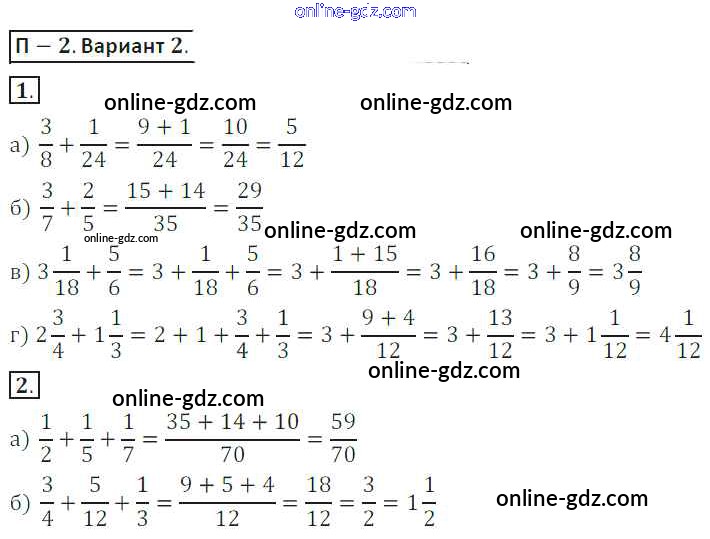 Готовые домашние задания по Математике за 6 класс Дидактические материалы Кузнецова, Минаева 2017 - ПР-2 Проверочные работы 2