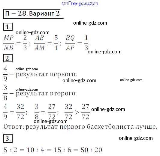 Готовые домашние задания по Математике за 6 класс Дидактические материалы Кузнецова, Минаева 2017 - ПР-28 Проверочные работы 2