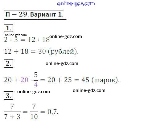 Готовые домашние задания по Математике за 6 класс Дидактические материалы Кузнецова, Минаева 2017 - ПР-29 Проверочные работы 1