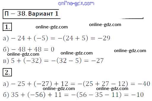 Готовые домашние задания по Математике за 6 класс Дидактические материалы Кузнецова, Минаева 2017 - ПР-38 Проверочные работы 1