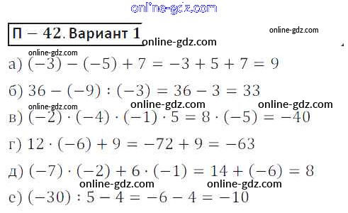 Готовые домашние задания по Математике за 6 класс Дидактические материалы Кузнецова, Минаева 2017 - ПР-42 Проверочные работы 1