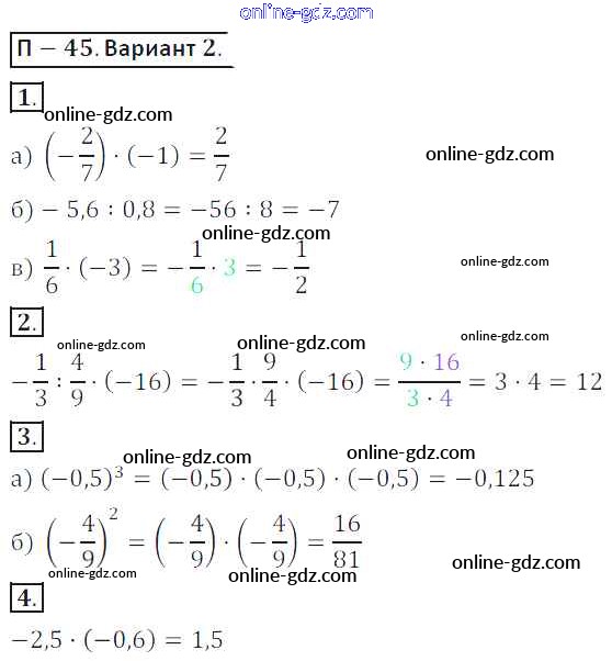 Готовые домашние задания по Математике за 6 класс Дидактические материалы Кузнецова, Минаева 2017 - ПР-45 Проверочные работы 2