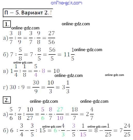 Готовые домашние задания по Математике за 6 класс Дидактические материалы Кузнецова, Минаева 2017 - ПР-5 Проверочные работы 2