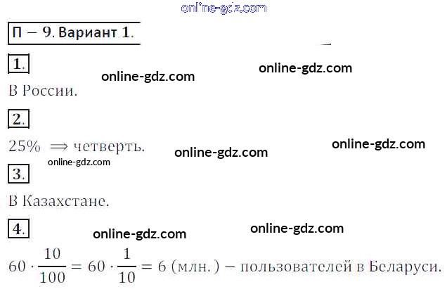 Готовые домашние задания по Математике за 6 класс Дидактические материалы Кузнецова, Минаева 2017 - ПР-9 Проверочные работы 1