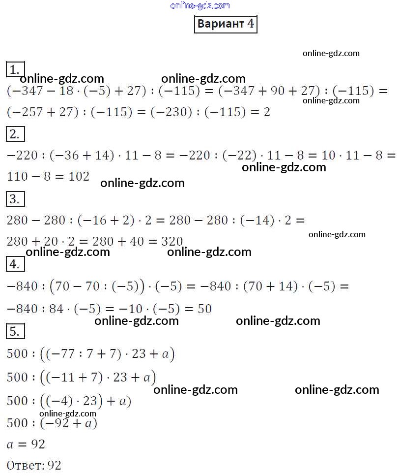 Готовые домашние задания по Математике за 6 класс Дидактические материалы Потапов, Шевкин МГУ - школе 2017 - СР-11. Варианты Самостоятельные работы 4