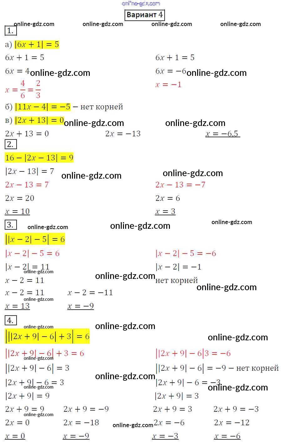 Готовые домашние задания по Математике за 6 класс Дидактические материалы Потапов, Шевкин МГУ - школе 2017 - СР-23. Варианты Самостоятельные работы 4