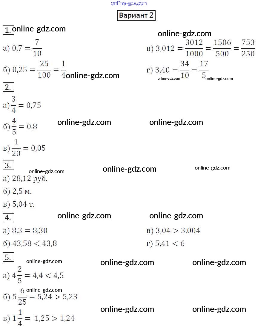 Готовые домашние задания по Математике за 6 класс Дидактические материалы Потапов, Шевкин МГУ - школе 2017 - СР-26. Варианты Самостоятельные работы 2